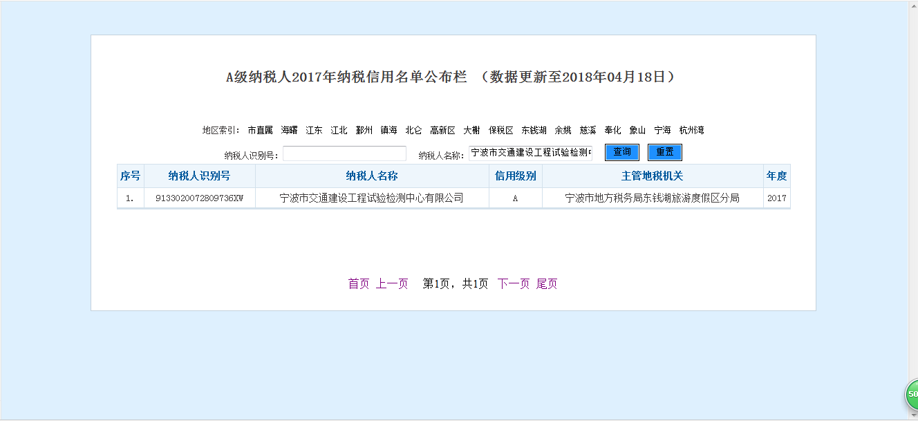 近日,公司在寧波市國(guó)家稅務(wù)局、地方稅務(wù)局2017年度納稅人履行納稅義務(wù)情況評(píng)定工作中獲得納稅信用等級(jí)“A級(jí)”評(píng)定,該級(jí)別系企業(yè)納稅人所能獲得的最高納稅信用等級(jí)。納稅信用等級(jí)是稅務(wù)主管機(jī)關(guān)對(duì)納稅企業(yè)上年度稅收工作和納稅信用的綜合評(píng)價(jià),“A級(jí)”納稅信用等級(jí)的取得充分表明了寧波市國(guó)、地稅局對(duì)公司在合規(guī)合法經(jīng)營(yíng)和繳稅方面工作的充分肯定,充分體現(xiàn)了公司依法合規(guī)經(jīng)營(yíng)能力和稅收綜合管理水平,也使公司可繼續(xù)享受稅務(wù)機(jī)關(guān)的多項(xiàng)稅收激勵(lì)措施。