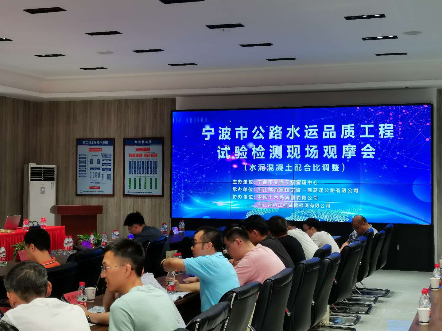 2020年8月28日,為提升員工技術(shù)水平,試驗部組織混凝土組相關(guān)人員參加了由寧波市交通工程管理中心組織的寧波市公路水運品質(zhì)工程試驗檢測現(xiàn)場觀摩會(水泥混凝土配合比調(diào)整)。