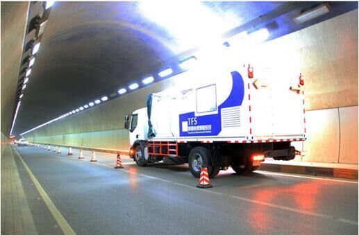 ZOYON-TFS隧道快速測量系統(tǒng),以中型卡車作為車載平臺,在平臺上安裝多個精密傳感器,通過無損檢測方式,一次通行即可完成全部隧道綜合數(shù)據(jù)的采集。該系統(tǒng)以0-80km/h速度對隧道進行動態(tài)連續(xù)檢測,持續(xù)時間工作長度可達每天8h,每日檢測里程可達500km,裂縫精度達到0.2mm,解決了目前隧道檢測的速度、精度和安全問題,為我公司后續(xù)開展大規(guī)模隧道病害預(yù)防性檢查提供了可靠的硬件保障。