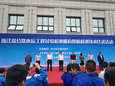 由浙江省交通運(yùn)輸廳主辦、浙江省交通建設(shè)工程監(jiān)督管理局和浙江省交通運(yùn)輸科學(xué)研究院承辦的浙江省公路水運(yùn)工程試驗(yàn)檢測(cè)結(jié)構(gòu)基樁檢測(cè)技術(shù)比武活動(dòng)于2016年10月16日至10月18日在杭州臨安舉辦,參加此次比賽的有浙江省內(nèi)具有公路檢測(cè)資質(zhì)和水運(yùn)檢測(cè)資質(zhì)的單位、在2016年度浙江省交竣工檢測(cè)中標(biāo)入圍的外省具有甲級(jí)資質(zhì)的單位共計(jì)70家,250多名檢測(cè)人員參與。