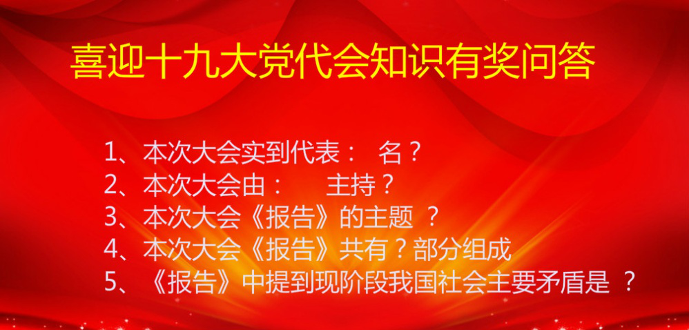 黨的十九大是我國全面建成小康社會決勝階段、中國特色社會主義發(fā)展關(guān)鍵時期召開的一次十分重要的大會。為了提高公司黨員學(xué)習(xí)積極性擴大參與度共同學(xué)習(xí)領(lǐng)會十九大會議精神,公司黨總支積極組織十九大會議期間每日知識有獎問答活動。